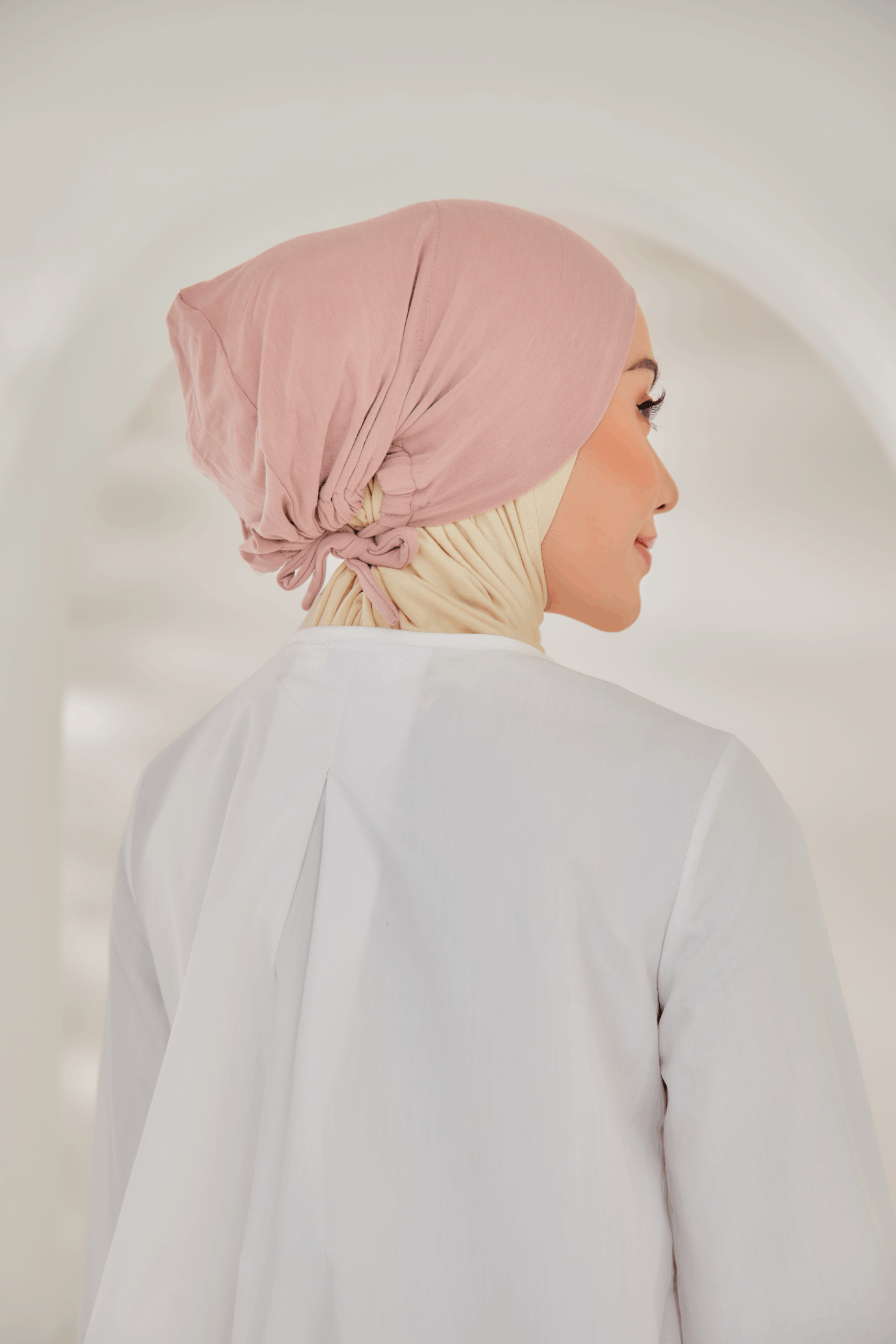 Safaa Tie Back inner is produced for those who preferred inner that are adjustable fit especially for those with high volume of hair. Safaa Tie Back Inners are crafted from High Quality Cotton Spandex which is imported from Korea. The quality of the fabric and Safaa’s comfort is comparable to our signature neck covered inner, Nawwar. There are 12 varieties of colors that are suitable to mix and match with your favorite shawl and hijab. You must fall in love with our Safaa Tie Back Inner!